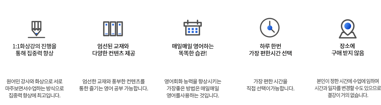 한달 간의 수업 성취도와 현재 자신의 수준을 정확하게 판단할 수 있습니다. 레벨평가의 결과를 근거로 교재나 수업 수준을 변경할 수 있습니다.